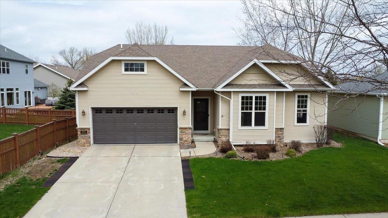 Showings start 4/17. Welcome home to this beautiful and well cared for ranch style home in Smith's Crossing with rare BACKYARD OASIS! You'll love the 9' ceilings, open layout, spacious rooms, stainless appliances, laundry / mudroom off the garage, and double vanity / soaking tub in the primary bath. Look out the abundant windows to find a generous deck, newly added stamped patio and picket fence, all backing up to a pond and nearby walking path - WILDLIFE ALERT! The lower level is packed with functional finished spaces, including a large family room, theater room, exercise room, storage space, plus 4th bdrm and full bath. One mile from Prairie Lakes shopping (Restaurants, Costco, Target, Cabella's, Woodmans, etc). Location, storage, room to entertain, peaceful yard - this home has it all!