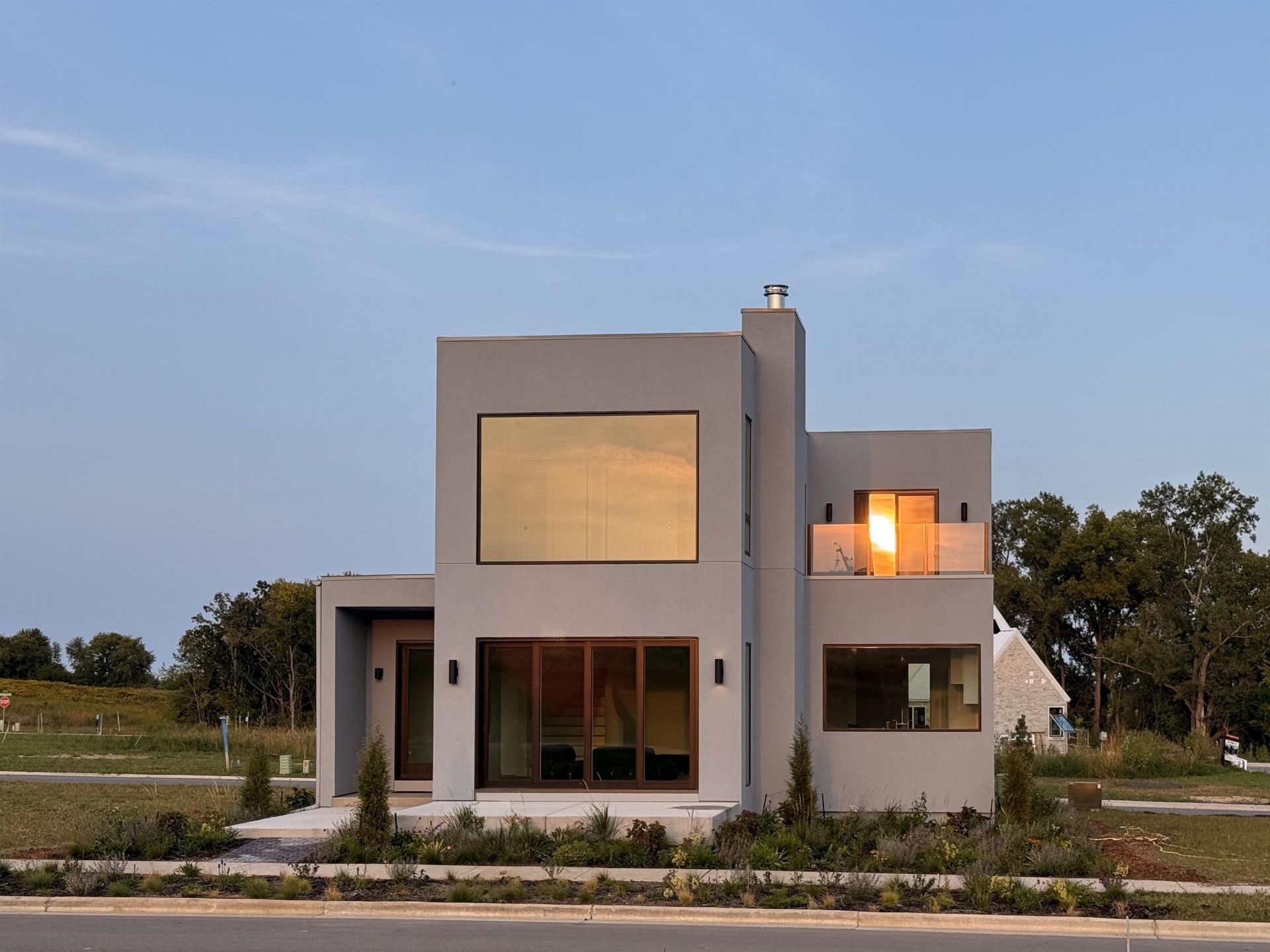 A move-in ready 2025 Parade Home showcasing contemporary design and abundant natural light at Belle Farm. The open concept main level features a private first floor primary suite, hardwood floors, a curved staircase, and a wood burning fireplace. Clean architectural lines and expansive windows create bright, inviting spaces throughout. Solar and geothermal systems support long term efficiency and durability. Upstairs bedrooms and a second level terrace provide additional space to unwind. A separately accessed 1 bed, 1 bath apartment above the garage adds rare flexibility for guests, extended stays, or a private studio. HOA includes yard care and snow removal for travel friendly ownership. Seller offering buyer $30,000 credit toward finishing the basement, with the potential to add 520 plus square feet of additional living space.
